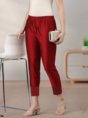 - Metallic Straight Pant with embroidery panel at bottom