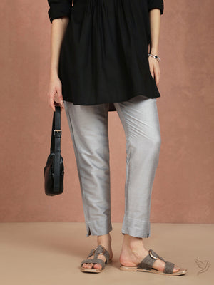Metallic Straight Pant - Silver String